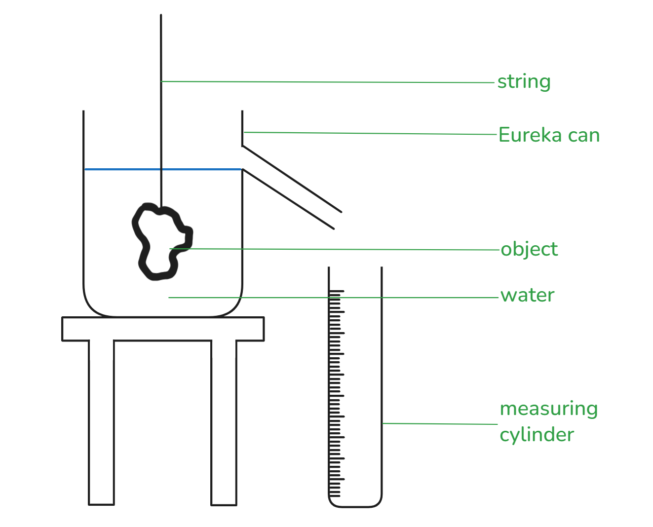 - Suspend the object by using the thread and slowly lower it into the Eureka can until it is fully immersed in the water